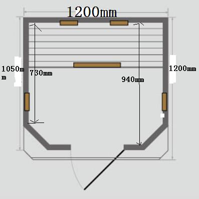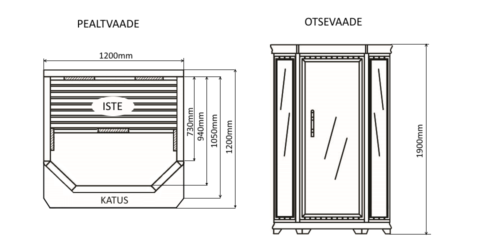 Infrapunasaun kahele inimesele mõõdud on 1200x1050x1900mm;