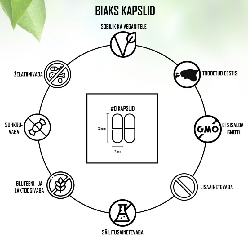 Kasutamine: soovituslik päevane annus täiskasvanule 3 kapslit. Sobib tarvitamiseks aasta läbi.