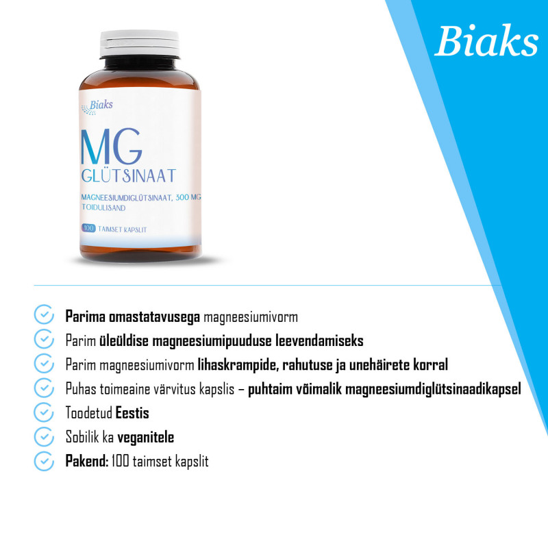 Koostisosad: magneesium (magneesiumdiglütsinaat), taimne kapsel (glaseeraine pullulaan)